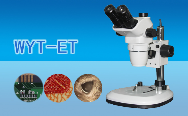 三目连续变倍体视显微镜WYT-ET配置了高眼点大视野目镜,视场大、立体感强,成像清晰;物镜可连续变倍,操作简单、使用方便;配置了上下LED光源,可观察不透明、半透明和透明物体;二路光路输出,一路用于观察、一路用于摄像,切换方便。仪器体积小、重量轻、易操作,质量稳定可靠。